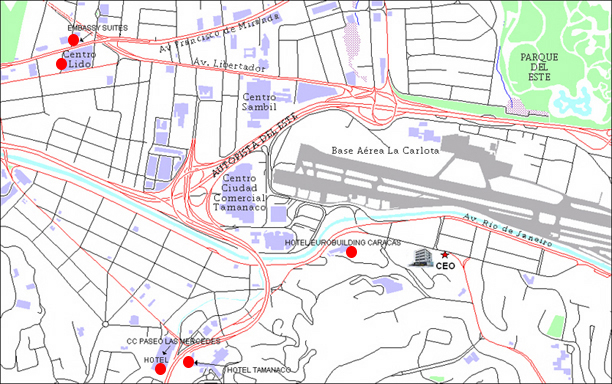 Dirección: Urbanización Las Mercedes, Centro Comercial Paseo Las Mercedes, Caracas. Teléfono: +58 (212) 993. 12. 44 / 993. 66. 44 Página web: www.hotelpaseolasmercedes.com Costo estimado: Entre US$88 y US$100. Formas de pago: Cheque o tarjeta de crédito. Habitaciones: cuenta con 194 confortables habitaciones. Sencillas, dobles y Suites. Descripción: ideal para las actividades de negocios o entretenimiento, muy cerca de los centros financieros más importantes y rodeado de los mejores centros nocturnos de Caracas en la Urbanización Las Mercedes. Servicios y facilidades de estadía: Estacionamiento Gratuito para los hospedados, Room Services las 24 horas, TV x Cable, Servicio de Pisos: Ama de Llaves, Prensa Diaria, Teléfono con Discado Directo, Vigilancia las 24 horas, minibar. Servicios opcionales: Tintorería, Lavandería, Servicio de Babby Sitter, Centro de Servicios al Cliente,Servicio Médico: Rescarven, Servicio de Traslado en Vans de lujo con capacidad hasta 12 personas, Cajas de Seguridad, Servicio de Taxi |